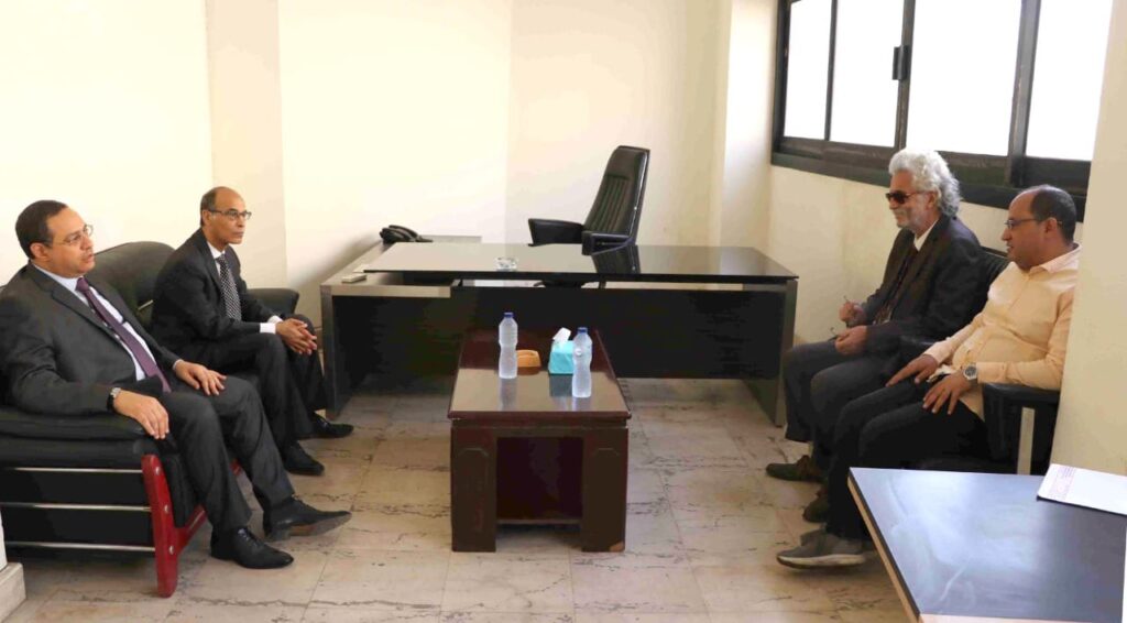 جاء اللقاء لزيارة السفير حاتم الألفي للمقر المزمع تخصيصه لإنشاء مكتب تصديقات وزارة الخارجية بمقر الاتحاد بالأزبكية، ووضع الترتيبات والتجهيزات اللازمة لافتتاحه، حيث من المقرر أن يقدم المكتب خدمات توثيق والتصديق على الشهادات والمستندات من وزارة الخارجية لأعضاء نقابات المهن الطبية وأسرهم.