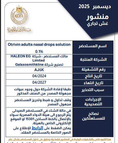«هيئة الدواء» تحذر من تشغيلة لقطرة «Otrivin»