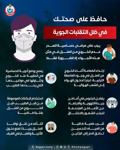 وزارة الصحة تحذر مرضى حساسية الصدر من مخاطر التقلبات الجوية وتصدر نصائح مهمة