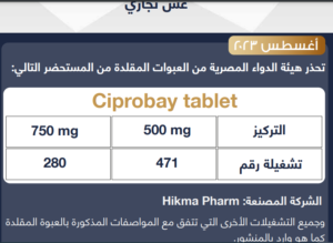 هيئة الدواء تحذر من عبوات مغشوشة من دواء سيبروباى