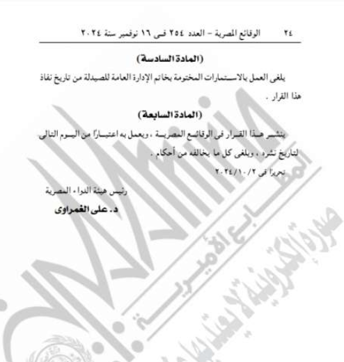 يلغى العمل بالاستمارات المختومة بخاتم الإدارة العامة للصيدلة من تاريخ نفاذ هذا القرار.