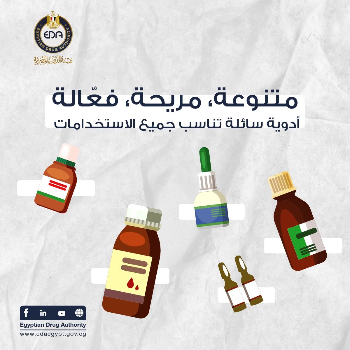 في إطار استكمال سلسلة شكل ومضمون، نشرت هيئة الدواء المصرية منشورا حول أهم الأشكال الصيدلية السائلة وأمثلة عليها.