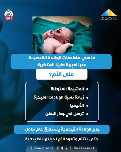 من جانب آخر، أشار الأطباء إلى أن الأنيميا (فقر الدم) تعد من أبرز المضاعفات التي قد تصاحب الولادات القيصرية المتكررة، بسبب النزيف المفرط أثناء العمليات، ما يضع الأم في حالة صحية غير مستقرة.