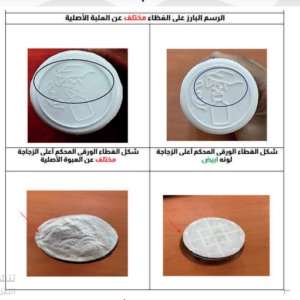 وأوضحت الهيئة فى منشورها الفروق بالصور بين العبوات الأصلية والمغشوشة من ميجاموكس شراب لكل تركيز من التركيزين المغشوشين، كالتالى: