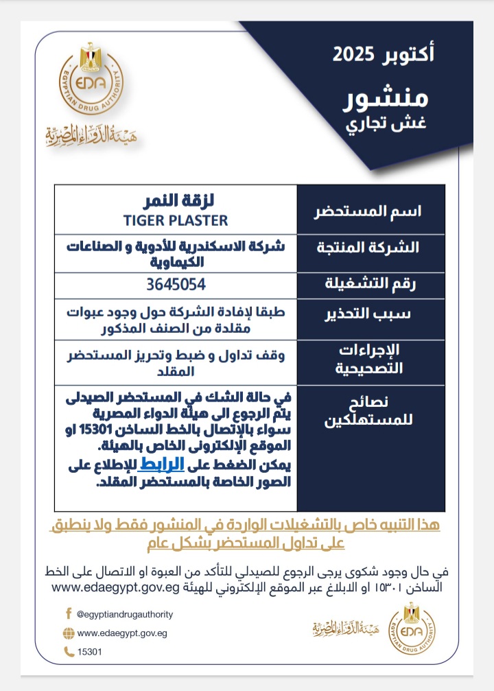 هيئة الدواء توجه بضبط تشغيلة من “لزقة النمر “