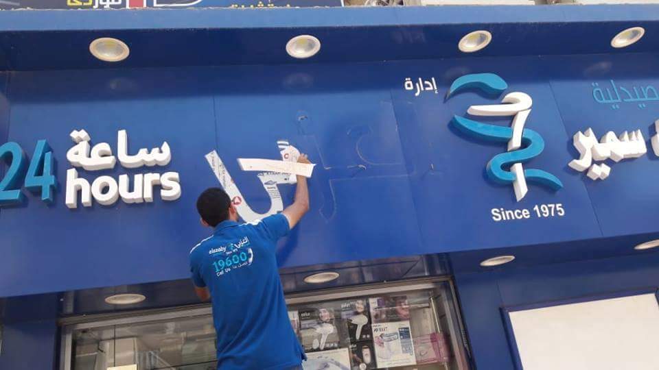 إزالة لافتات سلاسل الصيدليات تنتقل من القاهرة للسويس
